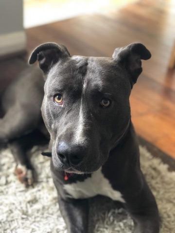 Introducing beautiful blue staffy Rocky, the ultimate stud-muffin.