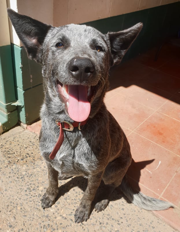 Hi my name is Blue, I have recently started living with my foster family and I get along great with my doggy siblings. I like to chase them around and play. I do have some energy when it comes to play time, but generally I am very placid and like to laze around get some loving. I am friendly with kids but can sometimes get a little excited when the little ones run around and squeal. I know my basic commands like sit, wait and shake hands. I also respond well to my name. I am not too bad on the lead but have more motivation to go when my puppy friends are coming as well, and I do travel well in the car. I am very loving and am looking for my forever home to love me back.