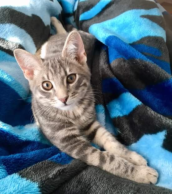 Hi, I’m Stripes! I’m a playful, friendly and cuddly kitten who’d make a lovely furry addition to any household. I love purring and smooching and once I start, I don’t stop! I’m crazy about human food and when you’re eating your dinner, I’ll come and try to steal some (even asparagus!). I’m a lap kitten who loves to curl up on your lap at any possible opportunity! I'm good with kids (except when they’re too noisy) and will happily play with them for hours then curl up on them. Won’t you take me home?