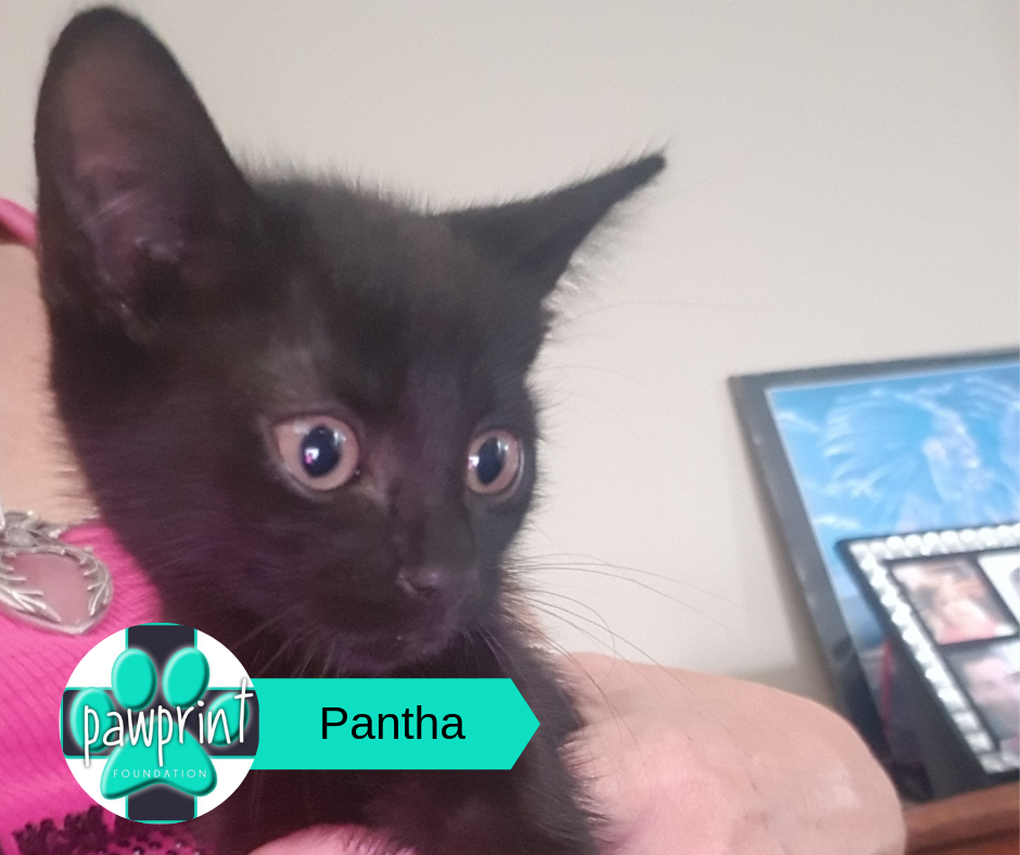 Pantha is a quiet and sweet little girl. She loves to sleep and will curl up with her siblings. Pantha will sneak up and sleep on you when you aren't looking.
