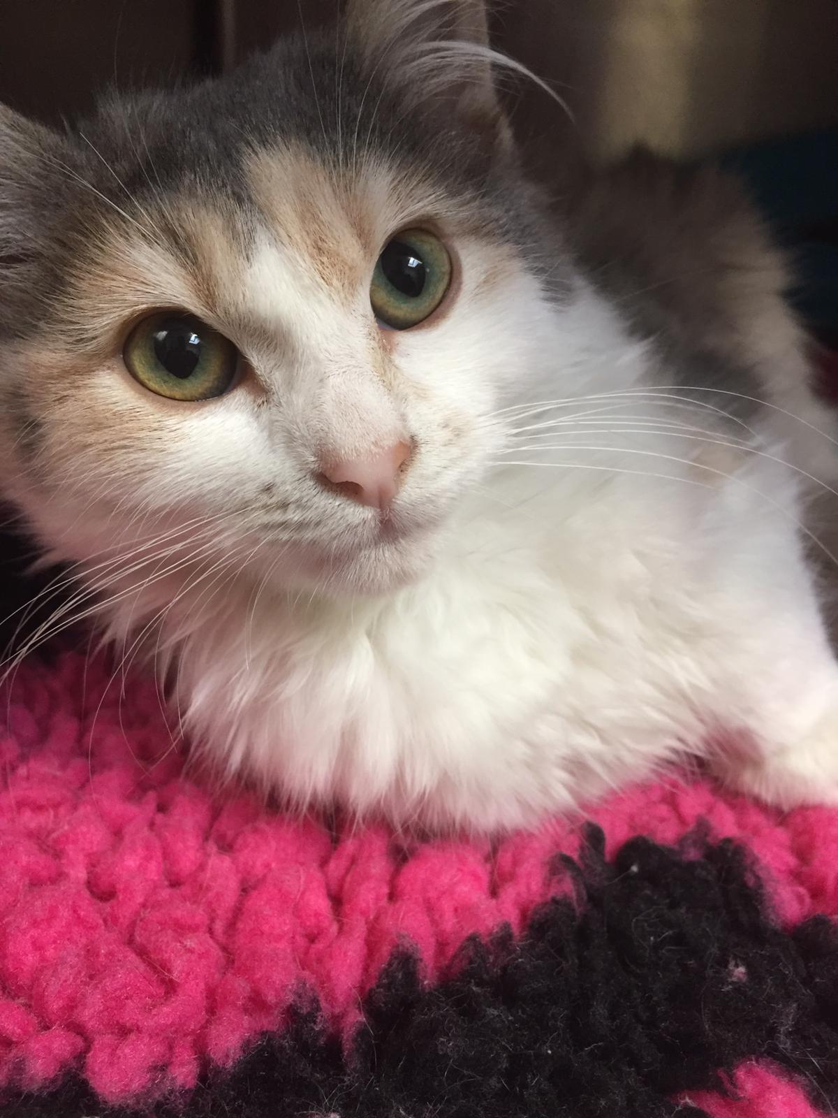 This beautiful girl is a super smooch, and adores cuddles and kisses! She would fit in perfectly with a family with other cats and even friendly dogs.