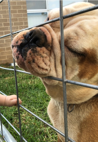 Mollie has had a couple of surgeries in the past to fix a cherry eye but this has been given the all clear now. Mollie is fairly large girl, at least 30kgs we think.
