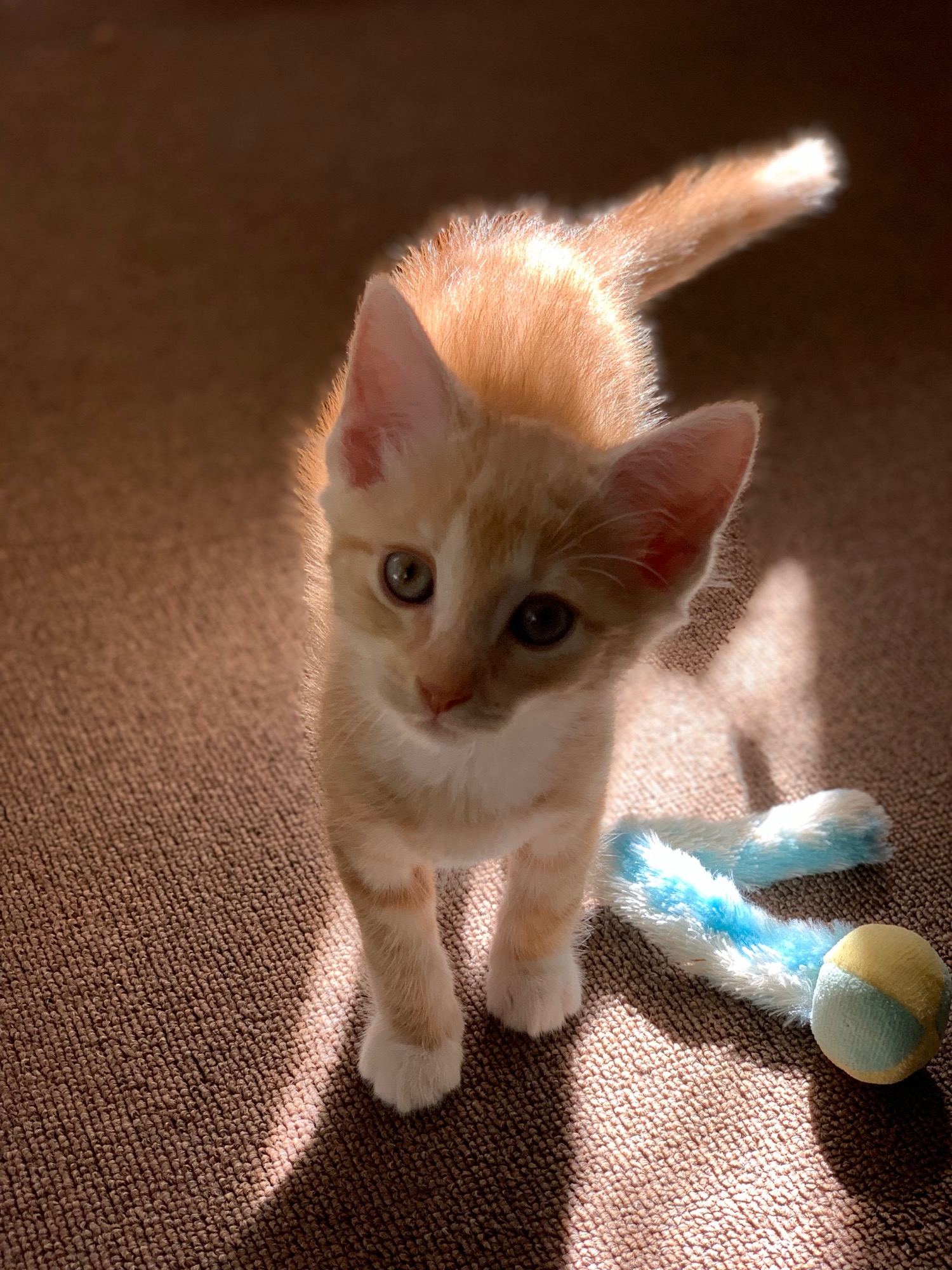 Rusty would love a play mate in his forever home and he loves chasing his siblings through his foster home. Ideally he would love to have kids aswell someone who will play with him but also kids who will be gentle enough to cuddle him.