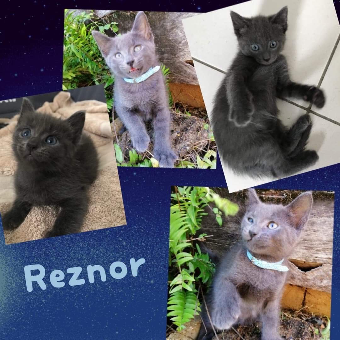 💙 REZNOR is a robust fella, loves to come up to your lap for chin scratches and he's becoming very affectionate. REZNOR is playful and a real nutter running around playing hide and seek with the other kittens. He's good with kids and doesn't mind getting picked up.