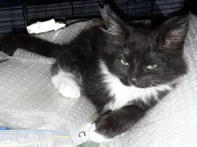Black and white Alfie is a very friendly kitten who loves a cuddle. He is a playful boy who is used to dogs and other cats/kittens.