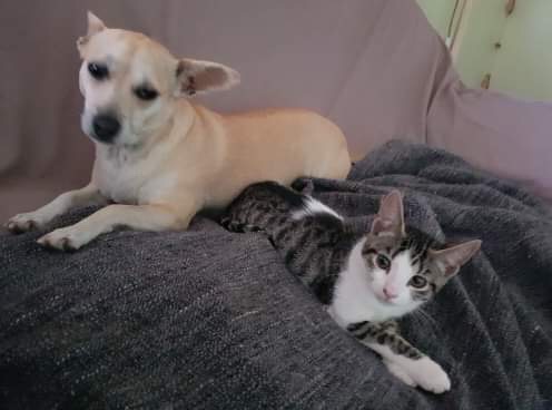 I’m a petite kitten with a huge personality ! I love to play ( my all time fav is stealing the toilet paper off the roll!!) I’m great with dogs and other cats. I’m not a big lap cat at the moment ( on occasion I’ll seek out a cuddle ) but do like to be close by!
