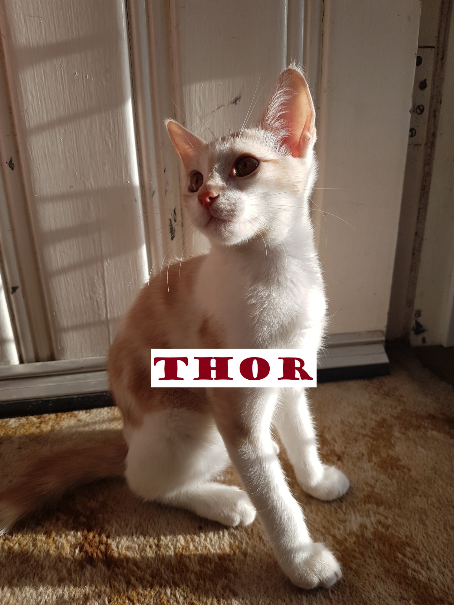 Thor is one of our amazing Marvel brothers available for adoption. Thor is friendly and very playful and especially loves to play with wand toys. Thor is affectionate and interested in whatever his humans are doing including keeping an eye on what delectable treats you may have to offer. Thor is toilet trained, likes to use his scratch post and is kid proof. His foster family find him to be relaxed and easy-going and a ball of energy when the toys are out.
