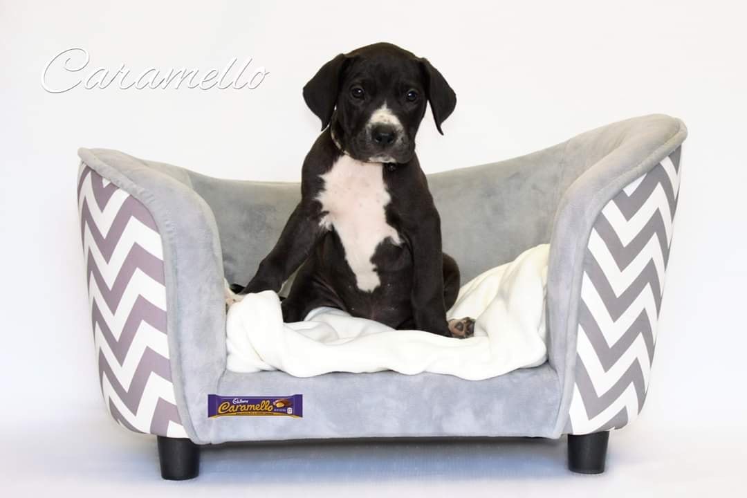 Caramello is our little independent soul, happy to adventure off on her very own without any reserves for the others, so could easily make a great solo dog in her brand new home. Of course she takes reassurance in her foster mum, but is happy to lead the pack of puppies.