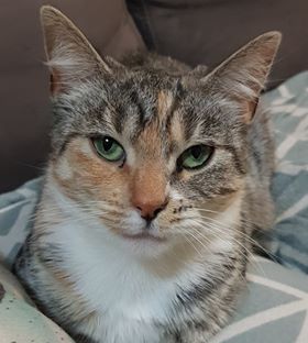 Dasha is not bothered by other cats. She would not be suitable for a family with small children, as loud noises frighten her, and she can sometimes get a bit carried away when she is in a playful mood. Dasha would be best suited to a quiet mature household.