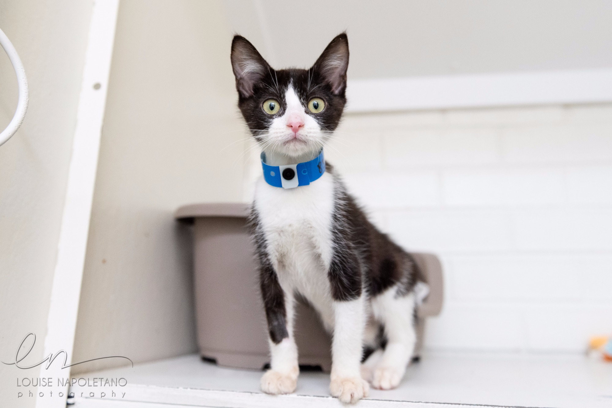 Mushu is filled with more personality than you can imagine! This little kitten is practically always playing with something. Even if there are no toys around, he will find something to play with... Mushu is very energetic and is constantly on the move, with his big beady eyes. He is very friendly and excitable and he is about 5 months old.
