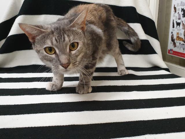 Nelly was a loving mother to beautiful kittens. They have since been adopted and now she is looking for her forever home. Nelly is a friendly and affectionate girl and she enjoys rubbing her head on people and climbing furniture.