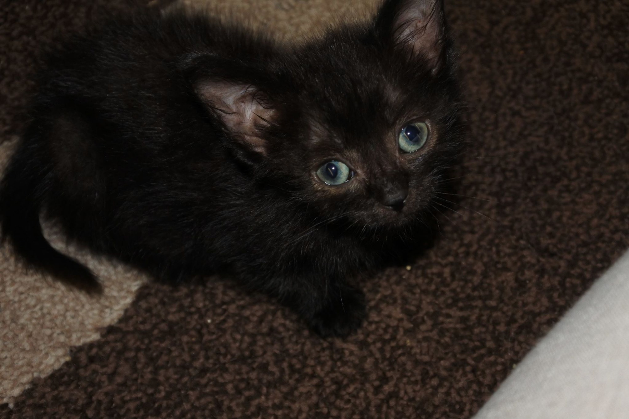 Mei is a gorgeous black girl who would just love to nibble your fingers and give you lots of kitten kisses. As soon as she is picked up she starts to purr. Mei and Pippin came into care from the streets of Tempe, NSW when they were just 5 weeks old. Mei relishes feline and human company and delights in any toy around. Mei would love to be adopted to a home that has 1 or 2 pets already or as a pair with Pippin