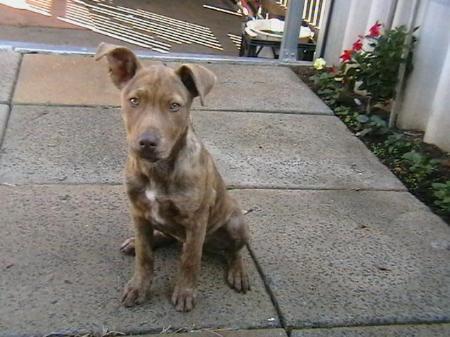 Husdon is a quite little staffy x puppy. He is playful and energetic but gental and good around little kids. He will need regular exercise to keep fit and healthy and though he is small now we do not know his full parentage and could become a reasonably large dog. He is a stunning red brindle and will be a beautiful dog when he is grown