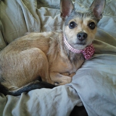 I was surrendered as being a Chihuahua x but I think I am more Terrier x myself. I won't suit living in an apartment, I want to have my own safe secure backyard to play in and I would love to be your bed buddy but am also happy to sleep in a den crate as long as I am with you. If you would like to meet me please apply further down the page, it's called an expression of interest and the CRQ people will contact you if you are a match for me, I hope to meet you soon!