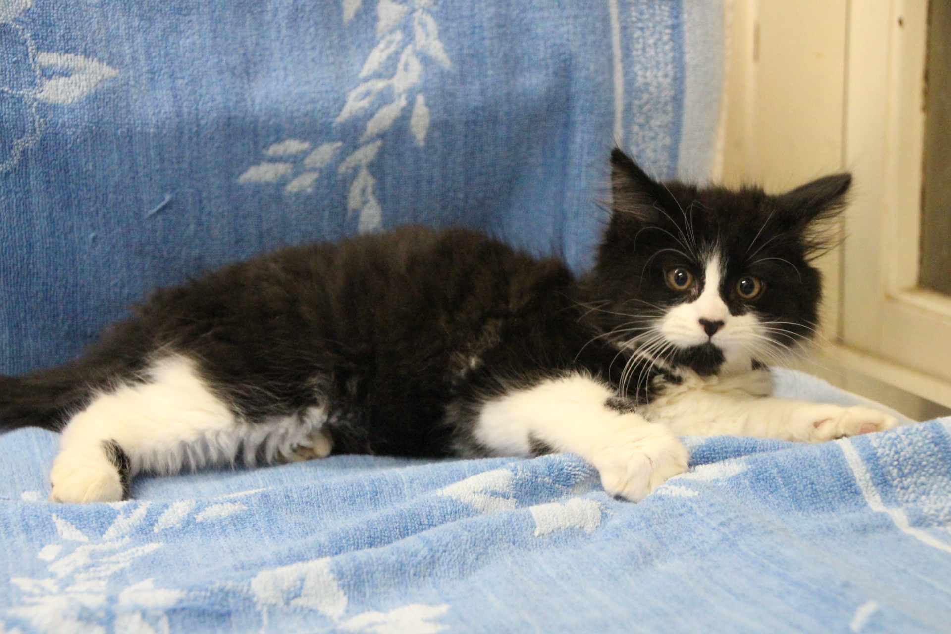 Mario loves snuggling on fluffy blankets for camouflage and he is the daddy kitten in his kitten group. He is a cheeky boy that likes relaxing on the window sill in sunny spots and he purrs loudly during snuggle time. Mario is about 9 weeks old.