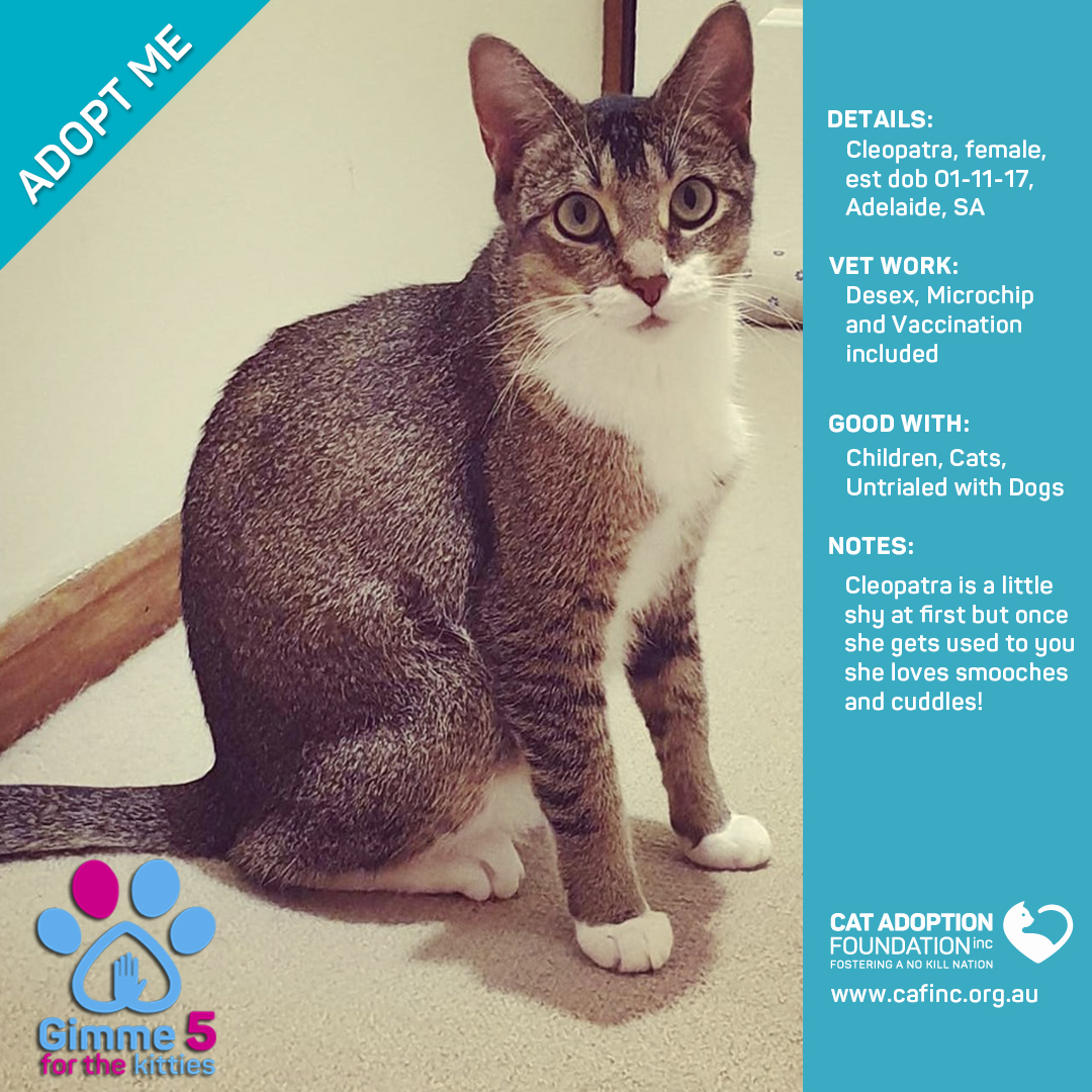 Donate to Cleopatra at Cat Adoption Foundation Incorporated via Shout