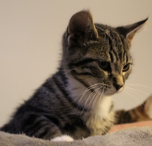 Rescued from a hoarder situation, Sawyer came into care with his siblings. Sawyer is a grey tabby short haired adorable boy approximately 12 weeks old.