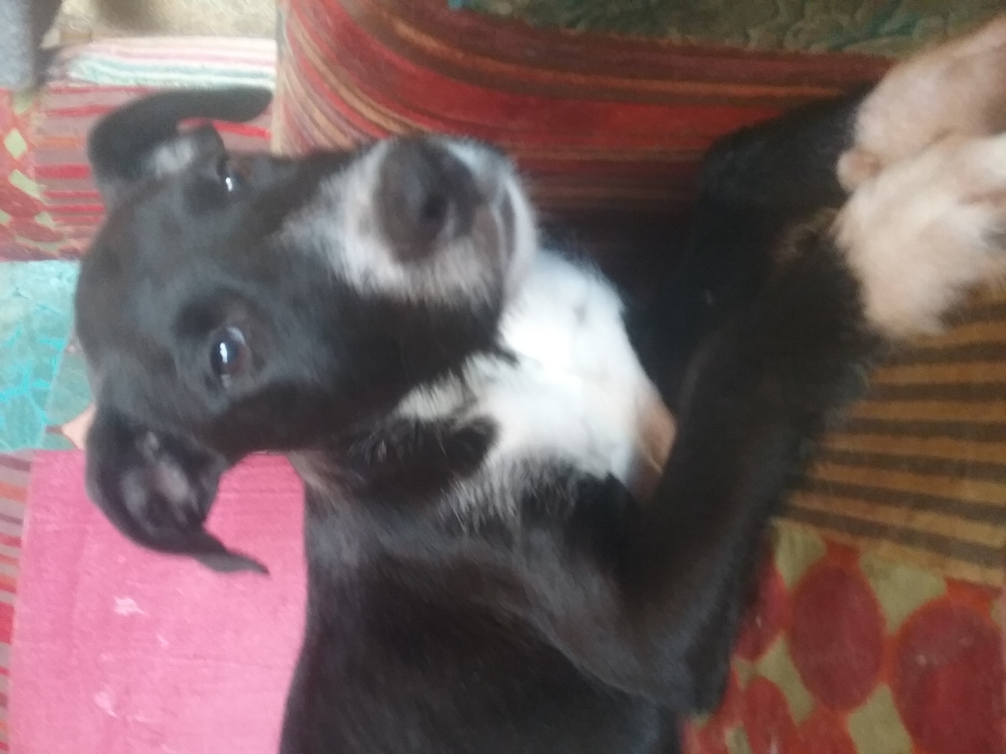 He was a tad thin but still a happy chap and after being in care now loves us humans.