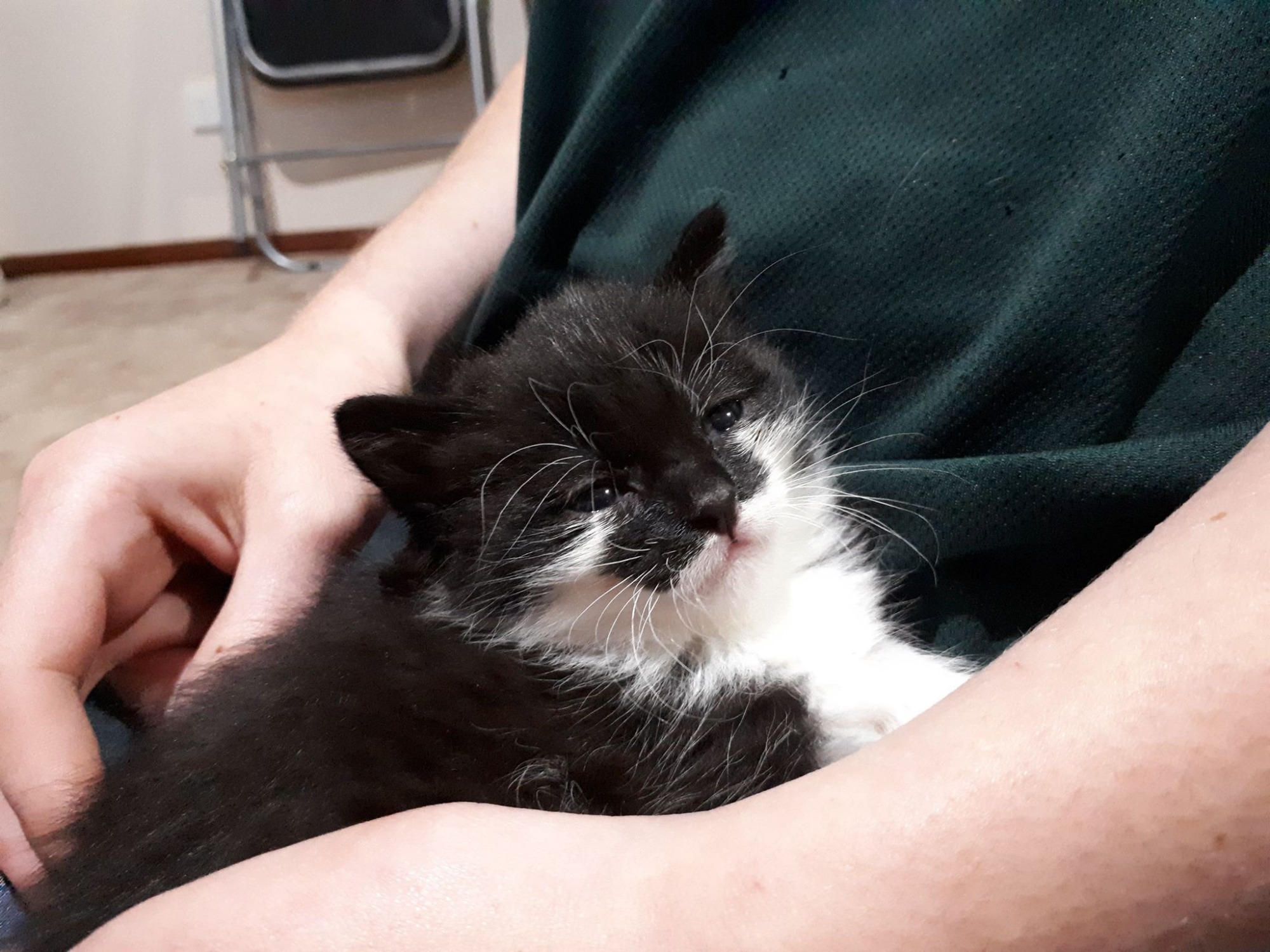 Lucy is one of our bottle fed babies; a beautiful black and white girl. She loves to play with her brother and sisters. Like her siblings, she is snugly and seeks out cuddles when she has finished playing. Lucy will be ready to go to her new home on or after May 24th. Her adoption fee of $220 includes her vet check, desexing and microchip as well as her vaccinations and flea/ worm treatments up to date of adoption. If you would like to meet Lucy or apply for her adoption, please message the page. B/N DACO 126680