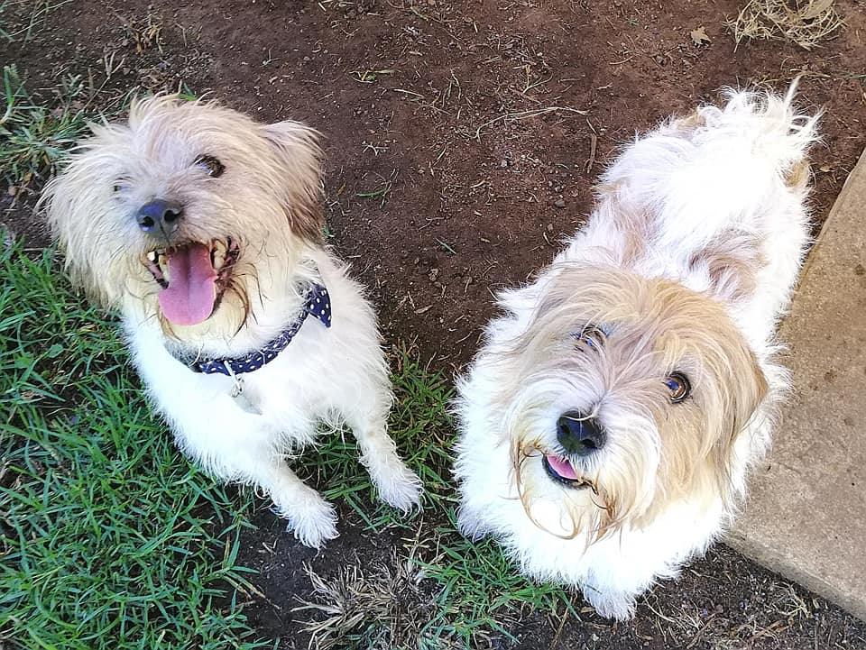 For senior dogs they are both very active, quick and agile, walk well on a harness and sit politely for treats.