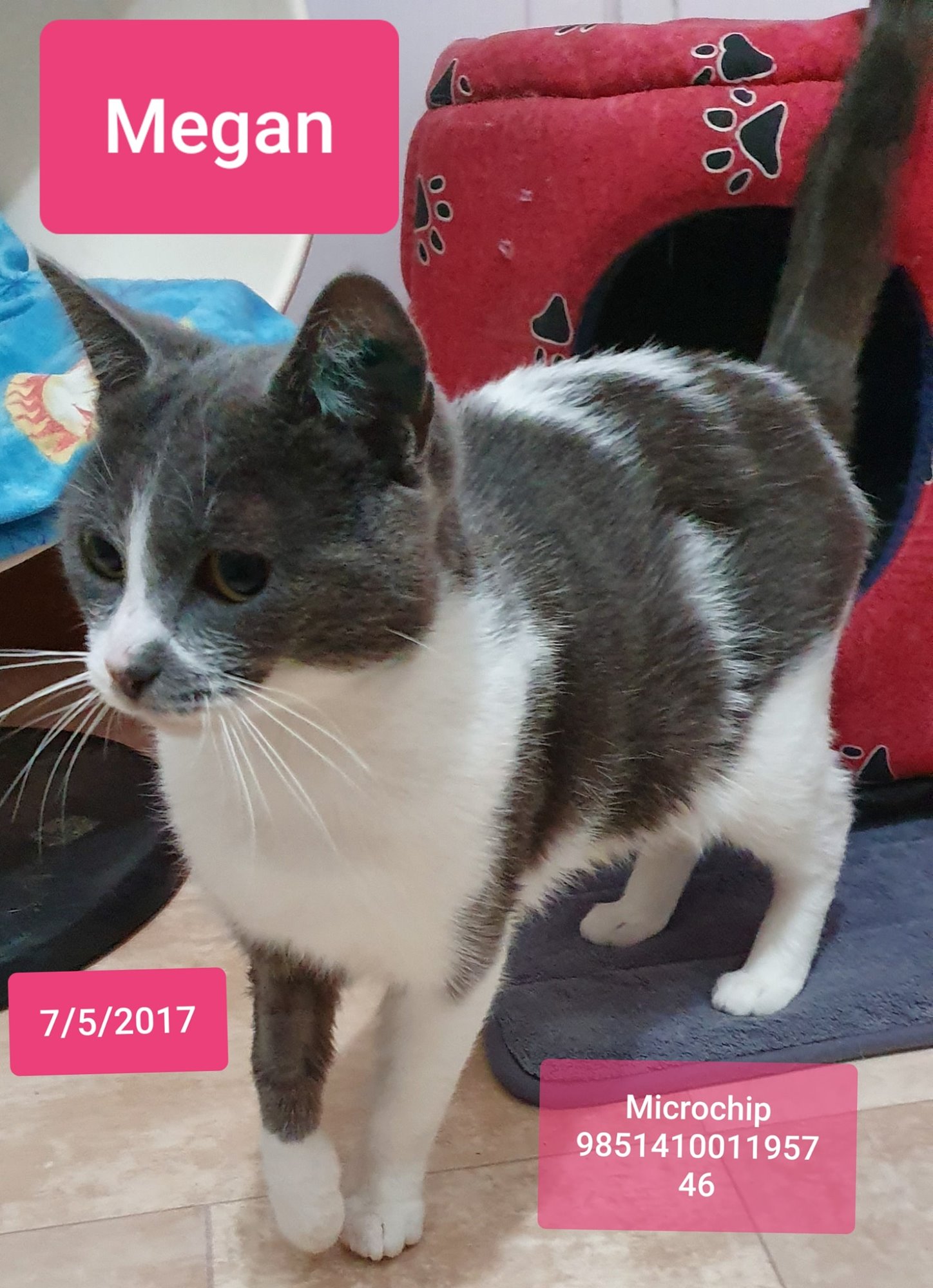 Introducing Megan our affectionate 2 year old Grey and White domestic short hair girl.