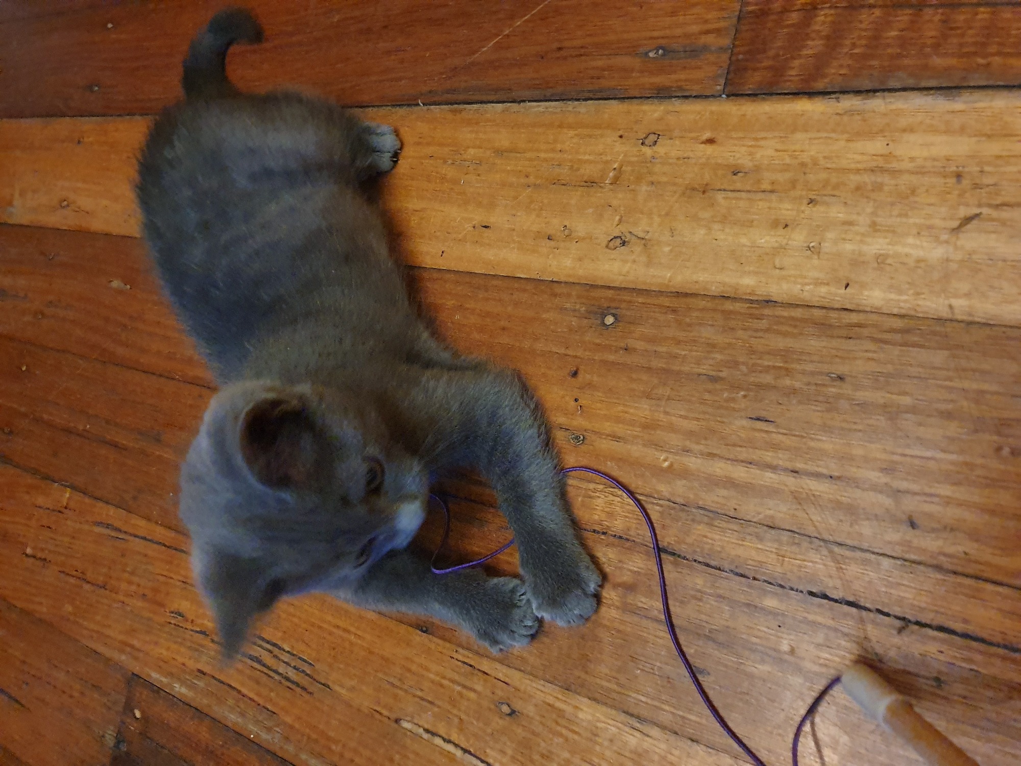 Calvin is a ball of grey energy, a little blur galloping around the house, little paws on the wooden floors. Then it's time for a (short) nap. Yes, this little boy is his own little kitty, curious, energetic, smart and playful. He adores his toys and really gives them a workout. And did we say he loves his tucker? Getting patted is nice too, and he is a real little purrer. Calvin is a delightful imp and we think he would make an awesome addition to the family.