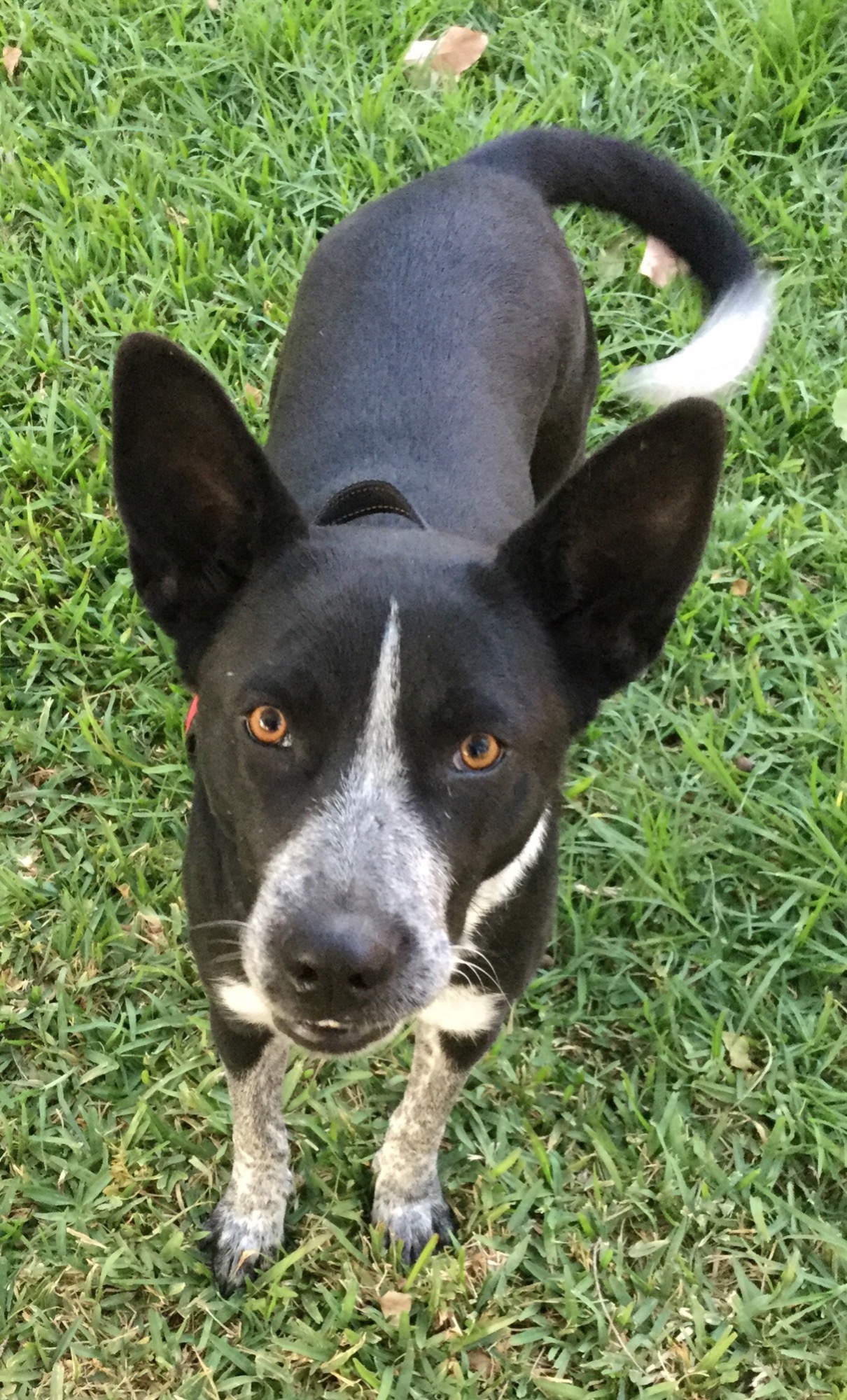 Her cross (Cattle x Kelpie) is a popular mix - the activeness of the Kelpie seems to be tempered by the laziness of the Cattle Dog, so that she’s not an overly active girl. Dixie is a good girl with people and other dogs alike - she’s well socialised, mixing with up to a dozen different dogs at any one time, whether they be big, small, young or old. She has a good friend in Tash, the red Cattle Dog (to be listed separately) at her foster home.