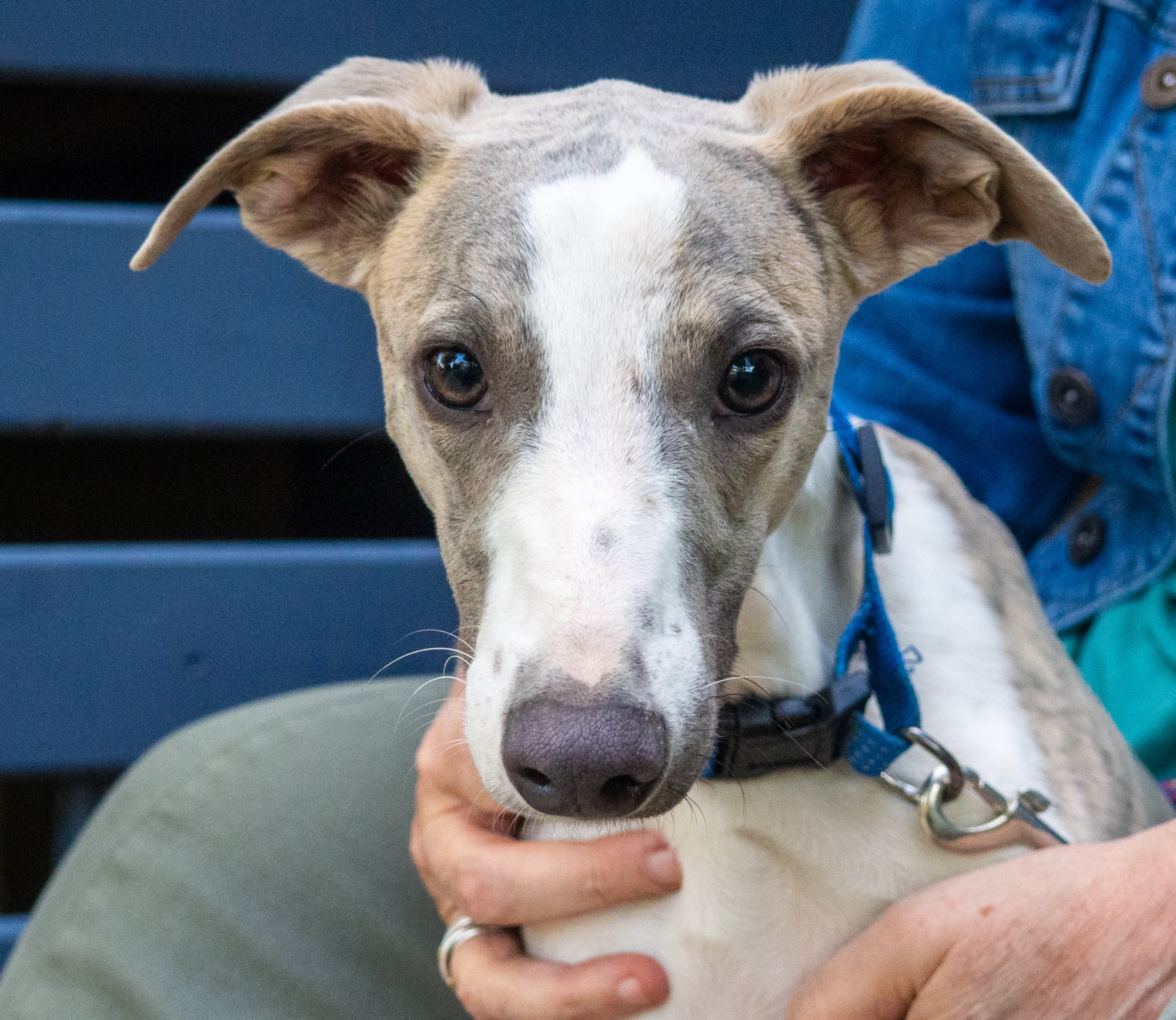 He is a pure-bred Whippet, who is super chilled and relaxed. He loves to be near his human, lolling about as much as possible, on whichever bed takes his fancy. He uses a doggie door and is 100% toilet trained. When he is in the garden he loves his ‘zoomies’ and once he’s done, it’s back to bed for a bit of a nap.