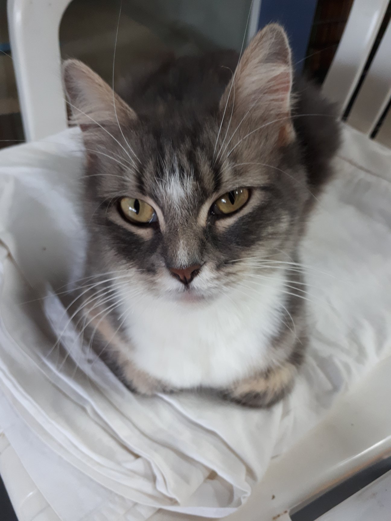 Lana would suit just about any family, but she would love a home where someone is around for company most of the time. Lana is very sociable and loves to take an interest in whatever you are doing. If you are looking for a cat that will be your best friend, Lana fits the bill.