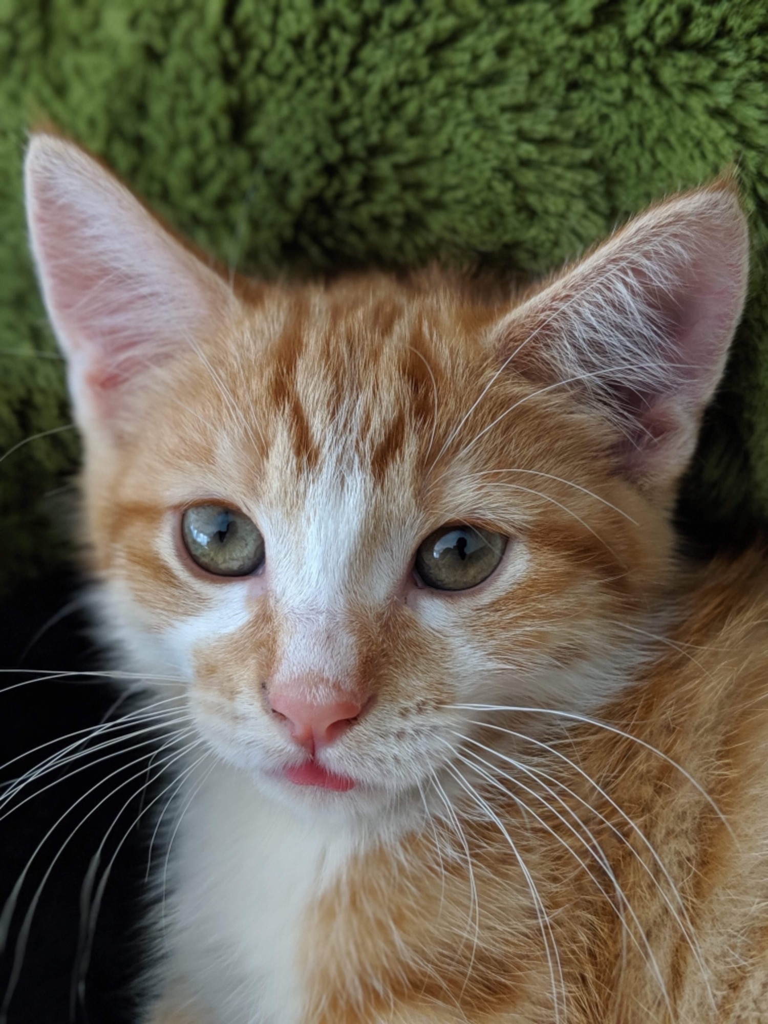 Barney is a little ginger ninja. He is the most playful little warrior. He can play for hours and sleep in the middle of the living room with his belly up. He's the bravest little boy we know, not scared of anything. Always the first to explore a new area, guiding his siblings on a new adventure. We would love him to go to a family with a little boy/girl who can share or benefit from his confidence. His vet said he's a very strong & healthy boy. His favourite place to seek is the door that hides lots of food, emits cool air and a shining light (a.k.a refrigerator). Very happy to sleep on you at night and soak in the warmth.