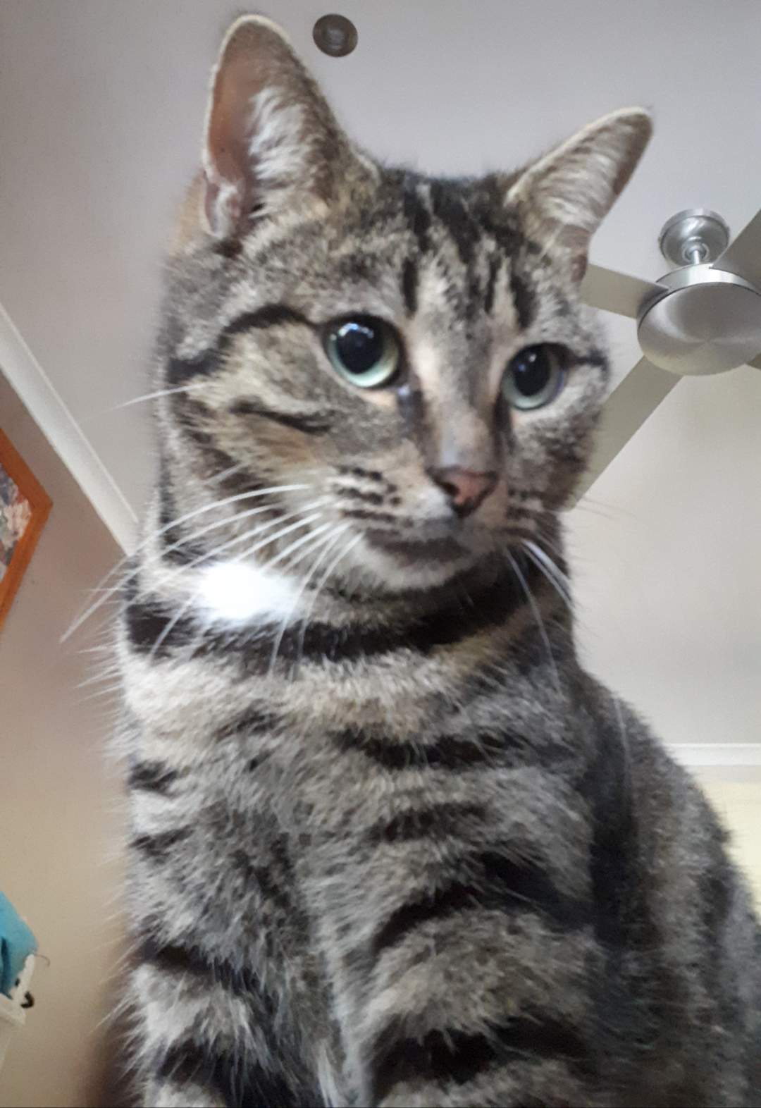 Pixi Dust grey tabby about 2 she is sweet a bit shy but will come round in the right home with gentle people. She loves a pat is litter trained will play with other cats fine with dogs