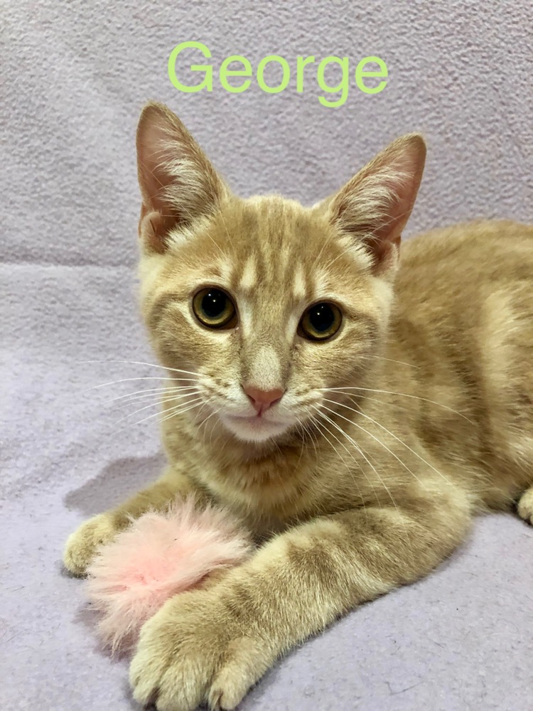 George is a playful little guy who loves chasing ping pong balls and paper. When he’s not on the go he’s happy to curl up next to you and get some chin scratches while he drifts off to sleep before his next meal.