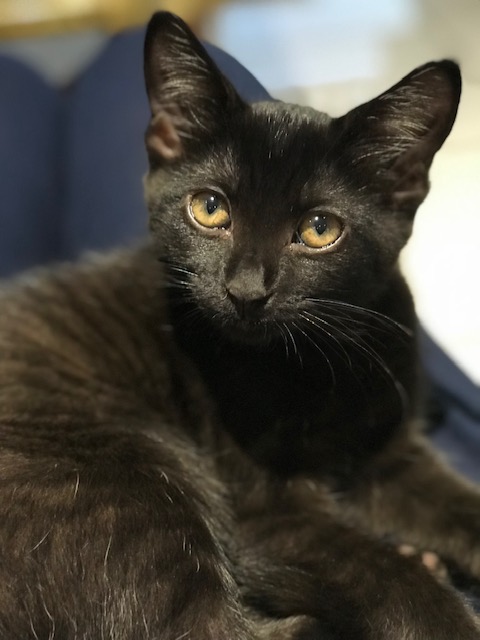 Luna is a confident, sweet natured black kitten that loves human attention. She is very nosey and loves to know what you are doing all the time. When she has finished being nosey and being amongst the action she will quite happily sit on your lap and fall asleep. Luna has made friends with her foster carers small dog and would be suitable in a household with children or other animals.