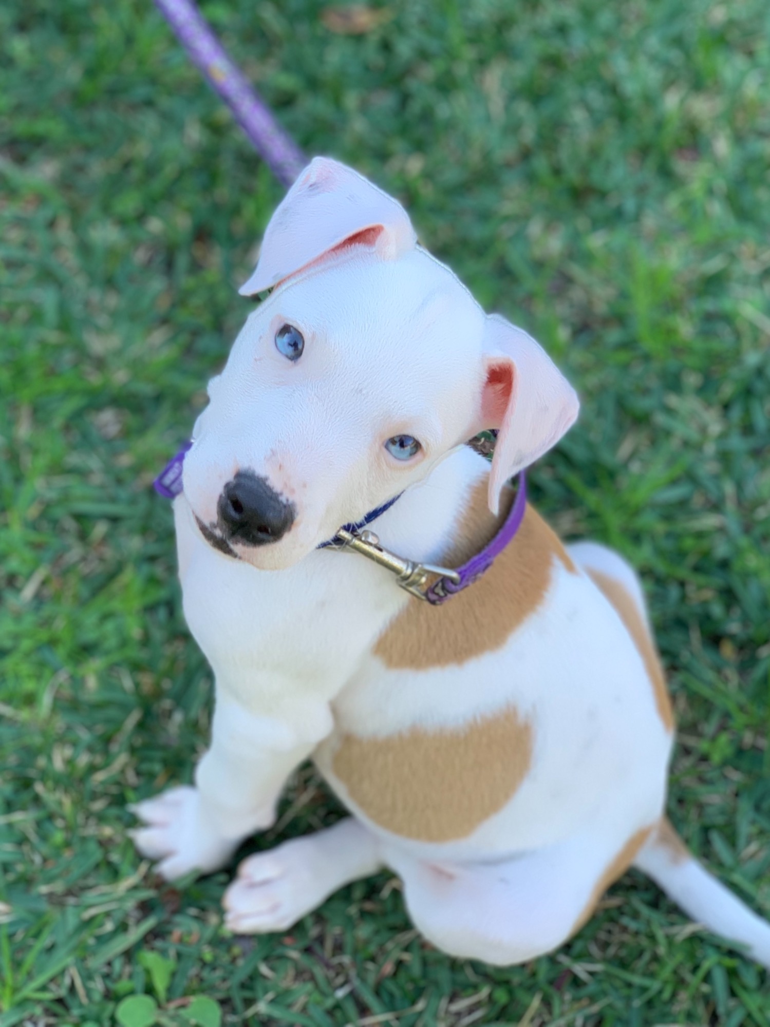 Duke would be best suited to a home where he had the company of his humans or another doggie companion. He will need a medium to large yard with secure height appropriate fencing and a family who will commit to his training. Due to his fair coloured coat, he will need sunscreen applied to his ears and coat to protect him from the sun.
