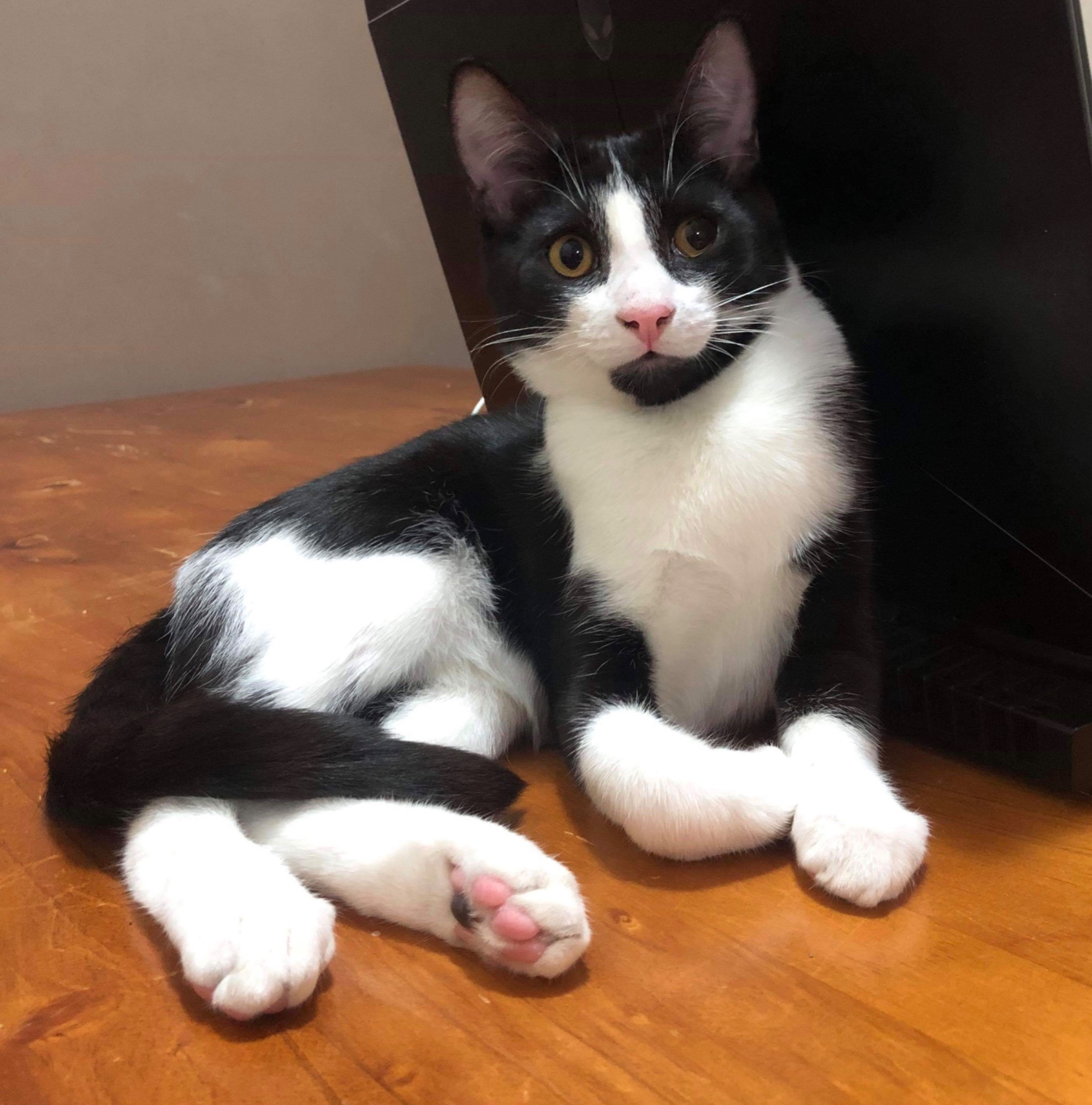 This handsome guy is possibly the friendliest kitten you’ll meet. He runs and looks out the window as soon as he hears your car arrive home and then greets you at the door, purring and waiting for hello cuddles😍
