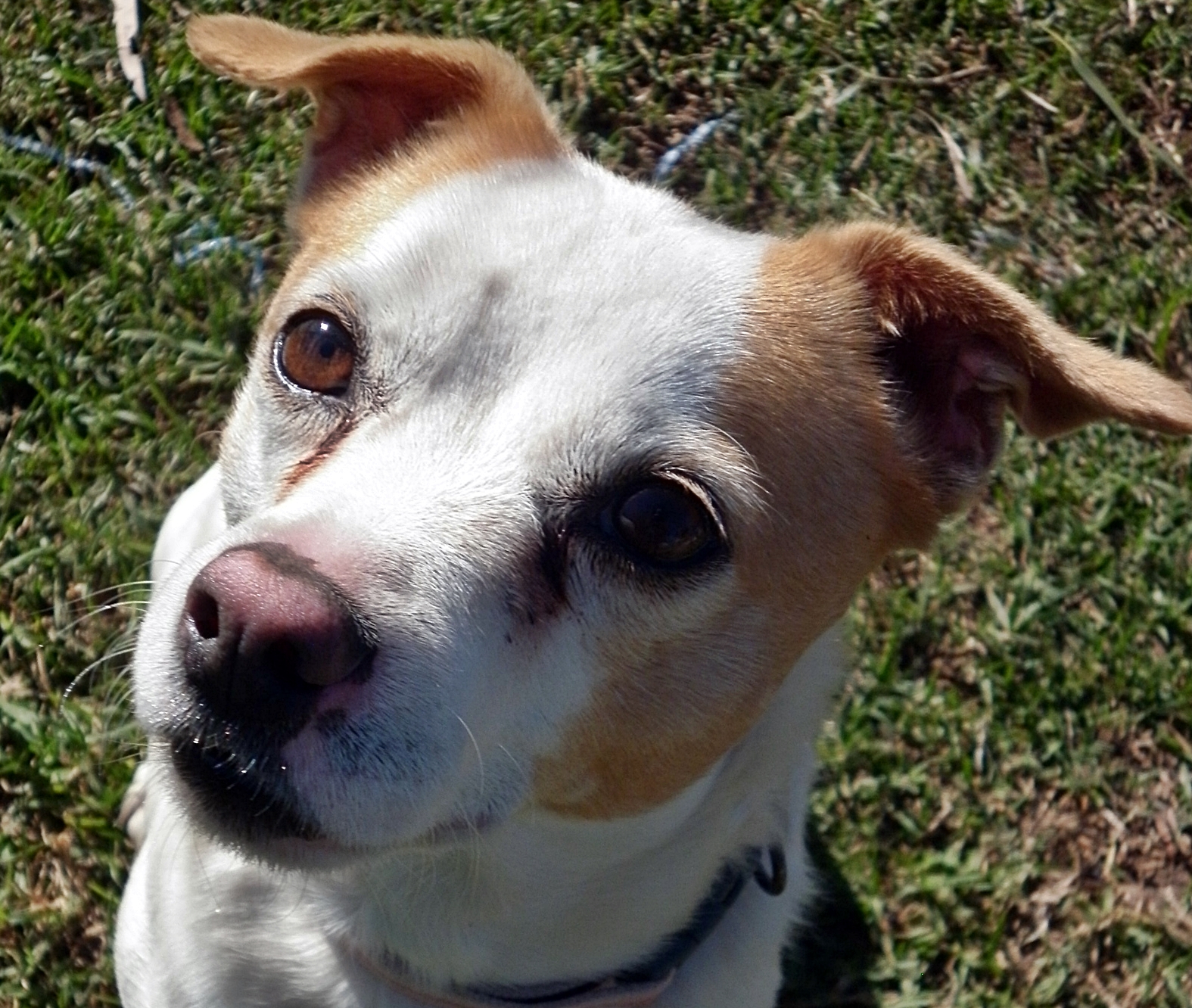 She walks politely on lead and knows to sit for a treat.