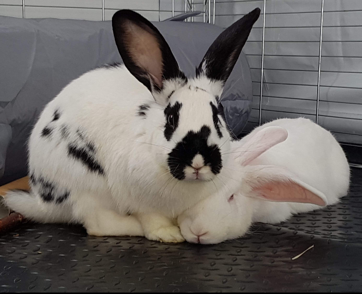 Chilli is a New Zealand White (2.8kg), and Pepper is an English Spot(3kg), and both of these big girls are very friendly and love being patted. These girls love hoomans so much that they run to welcome you and get excited when you enter the room. They've been raised indoors in a big penned area and live that way very happily. Chilli and Pepper are lovely girls looking for a special family to love them.