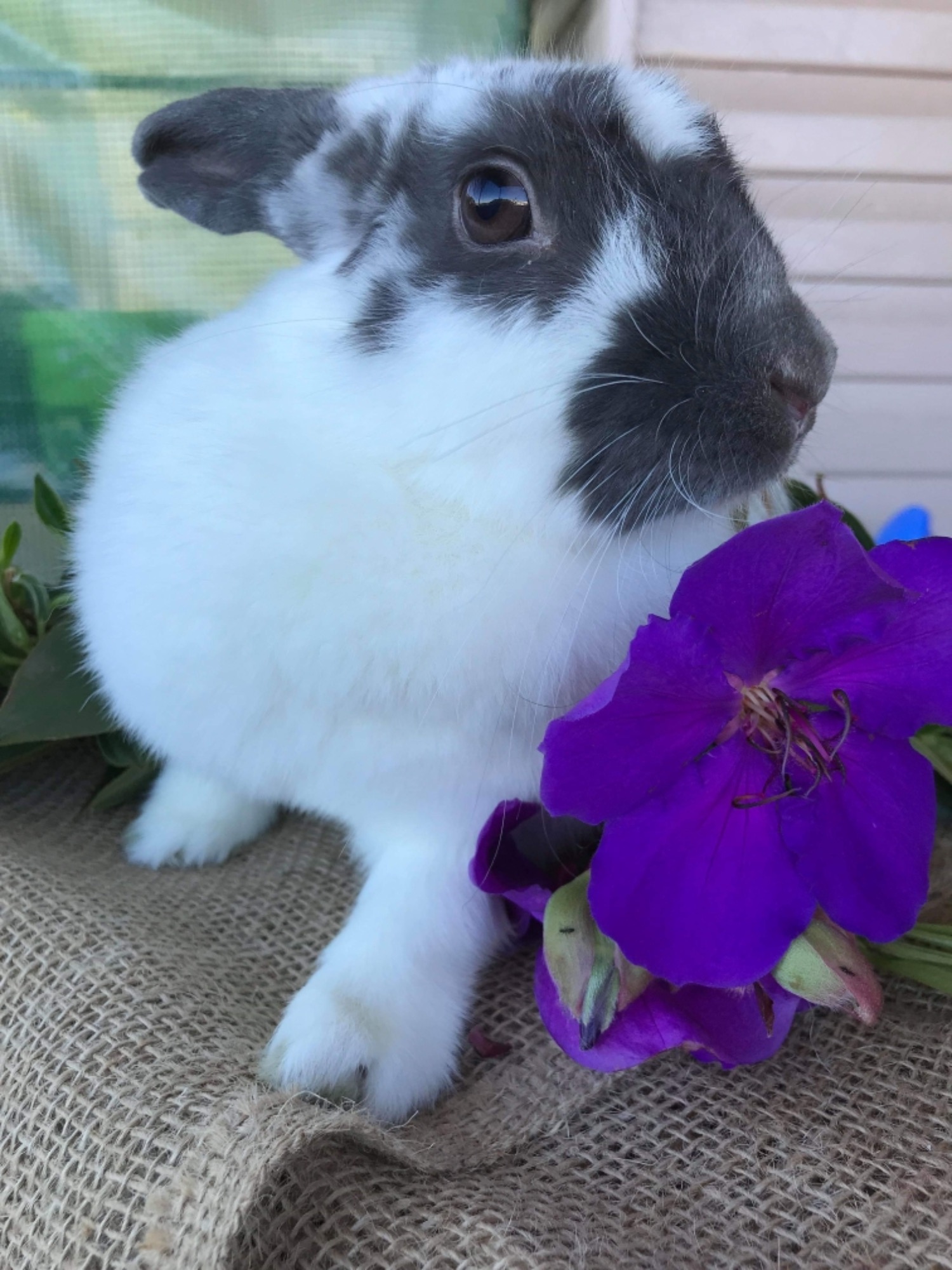 Cookie is one of the sweetest little buns you'll ever meet. She loves her cuddles and will tell you off if you stop petting her. She has also lived around dogs nearly her entire life and doesn't seem phased to be around them. Cookie is almost fully litter trained and loves her hay.