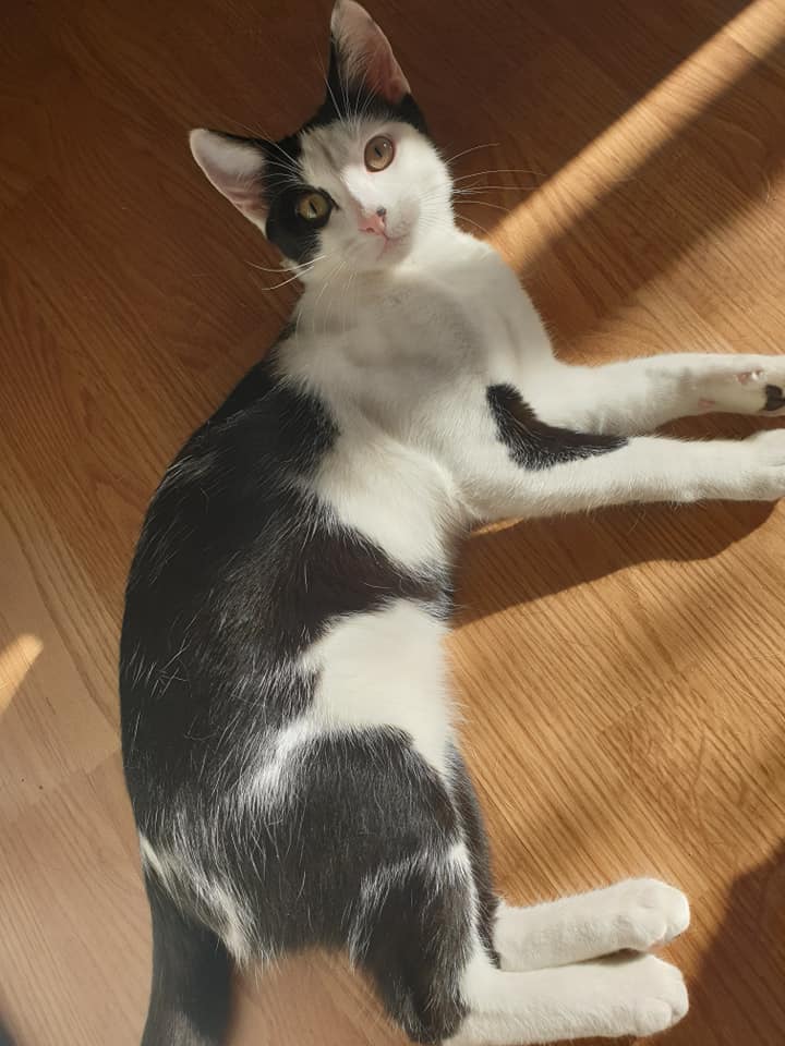 This is Storm. He is a cheeky boy and very curious, well actually nosy! He loves a good snuggle when you're watching TV or in bed. He HAS to know where you are and if he can't find you he will meow until he can see you in sight. He has a bundle of energy doing zoomies around the house playing with anything he can find. He loves dogs and often snuggles up with them. He has also been introduced to older cats.