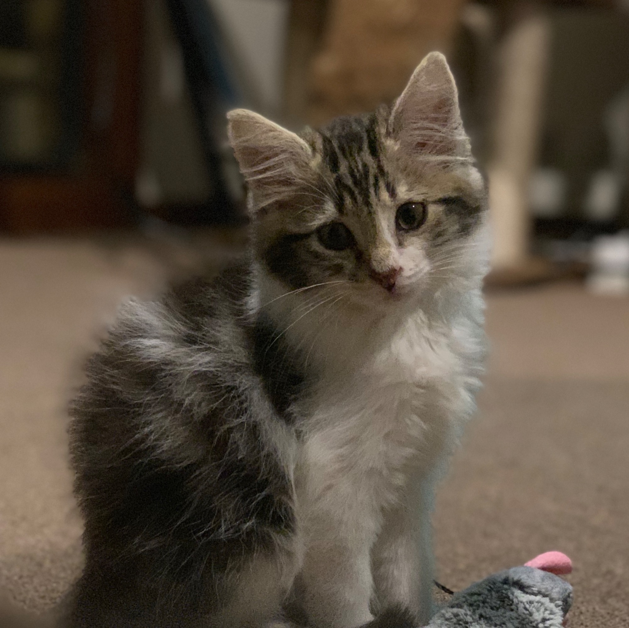 Parker is a very relaxed kitten who adores his humans and loves to find the closest lap to snuggle on.