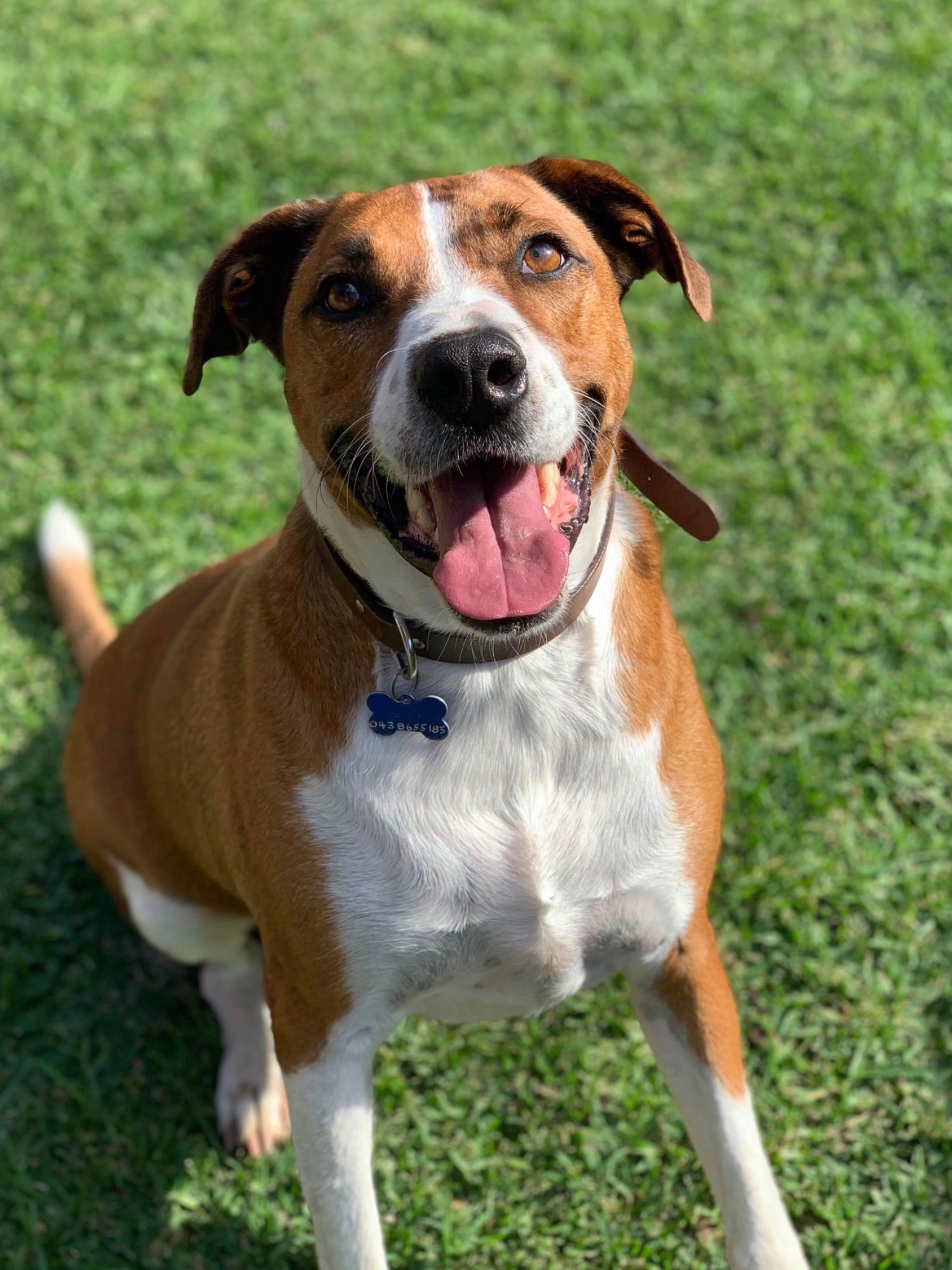 This handsome boy weighs approx 34kg and on the larger side of medium, but he would love to be a big part of your family. He does cope with spending time on his own outside and if he does bark at unusual sounds happening around him, he will listen when told to stop. Toby knows basic commands such as 'sit', 'stay' & 'shake' and gorgeous brown eyes you can't help but admire 😍