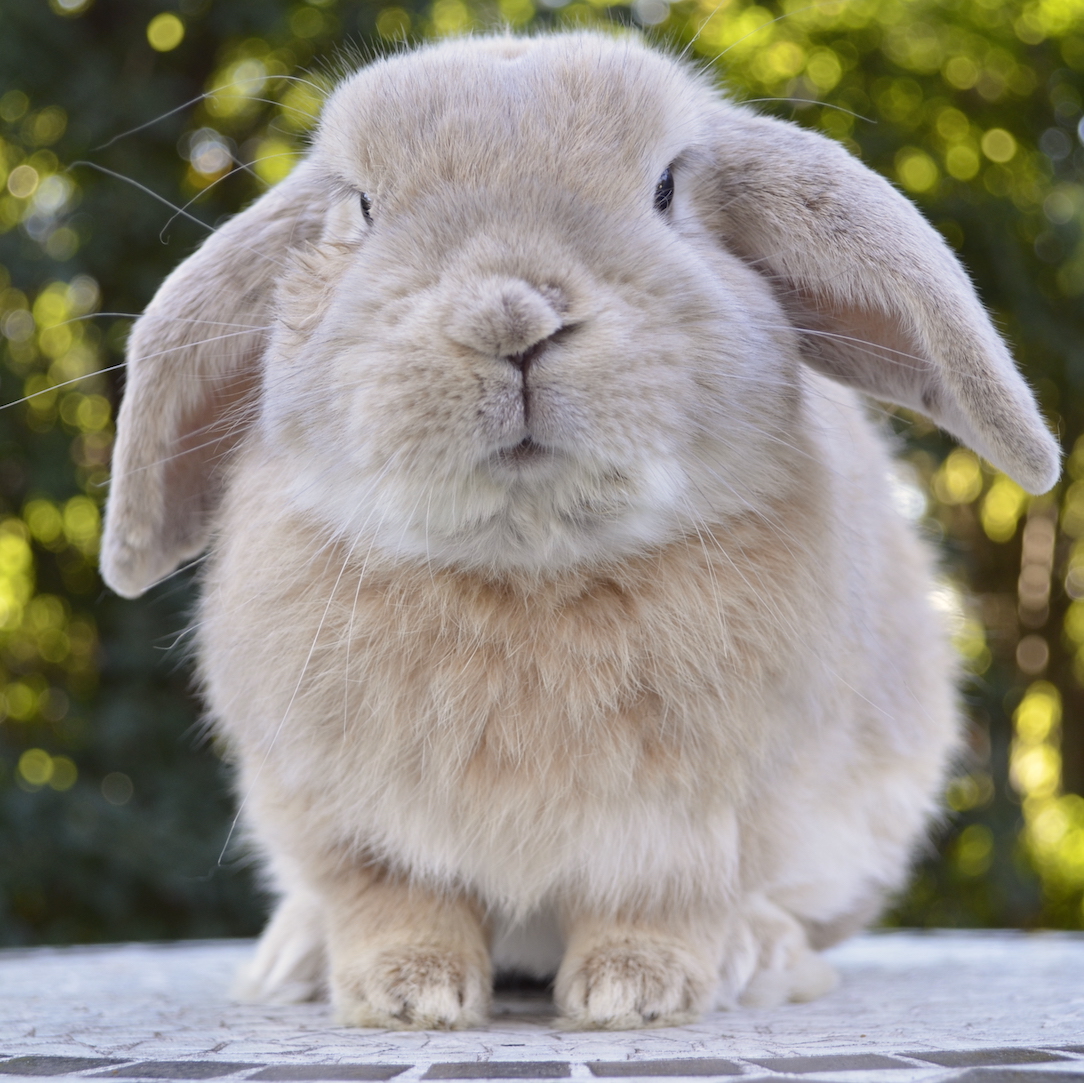 Apple was found hopping along a street by a kind couple. In all likelihood, he's been dumped, and he's really been through the wars. He must have been such a good looking mini lop at one time, but it seems he's been regularly attacked by another male rabbit, and getting quite disfigured. He's healed and happy, but has scars all over, a nose that is rather crooked, crumpled ears, etc. It has not affected Apple's personality though, as he still thinks everyone wants to be his friend. He is a very good bunny.