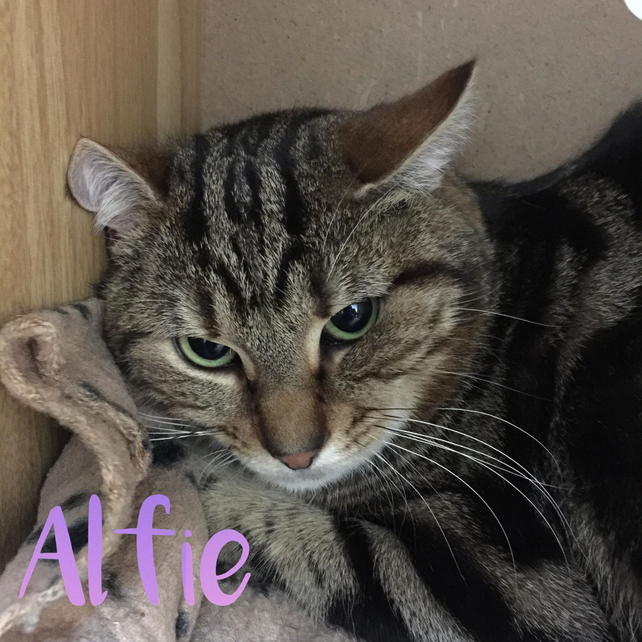 Alfie just needs a bit of patience and he'll be yours forever. He's a smoochy boy once he feels comfortable around you or if you pretend he's not there - then he'll headbutt you like crazy!