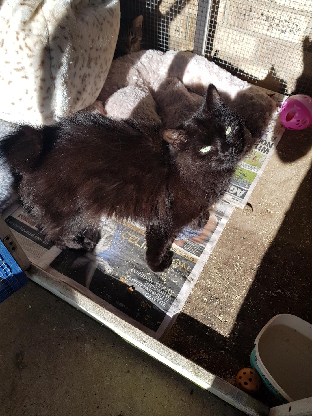 Next is SHAYLA 16MONTHS OLD BLACK FEMALE MANX X RAGDOLL,VERY GENTLE ,BUT,CAN BE SHY BEST SUITED TO OLDER PERSON OR ONE OWNER,