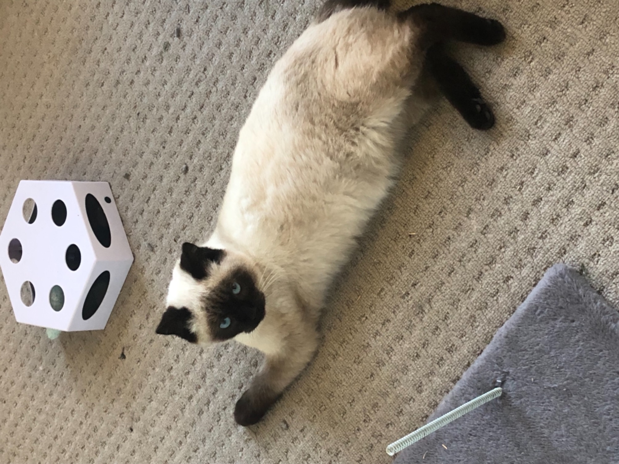 He has stunning blue eyes and a beautiful soft coat with incredible markings. He is a small compact cat with a shorter tail and smaller cute stumpy ears. He is just amazing to look at!