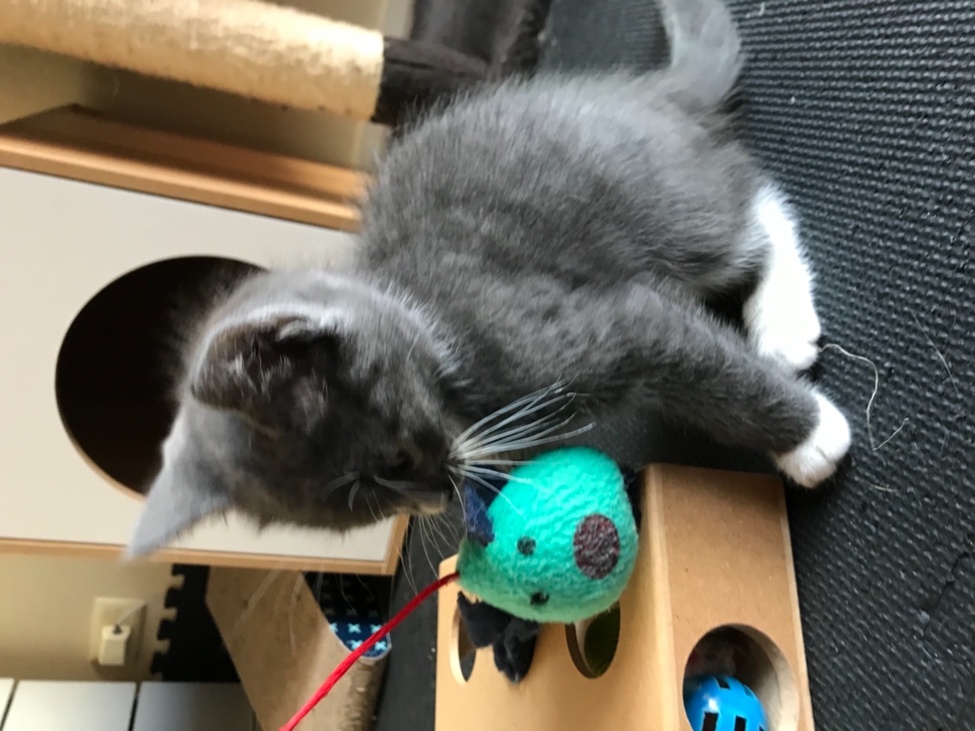 Cody is a cheeky little boy with a big personality. He loves to play with his toys whether it be a mouse or the tunnel with his siblings.