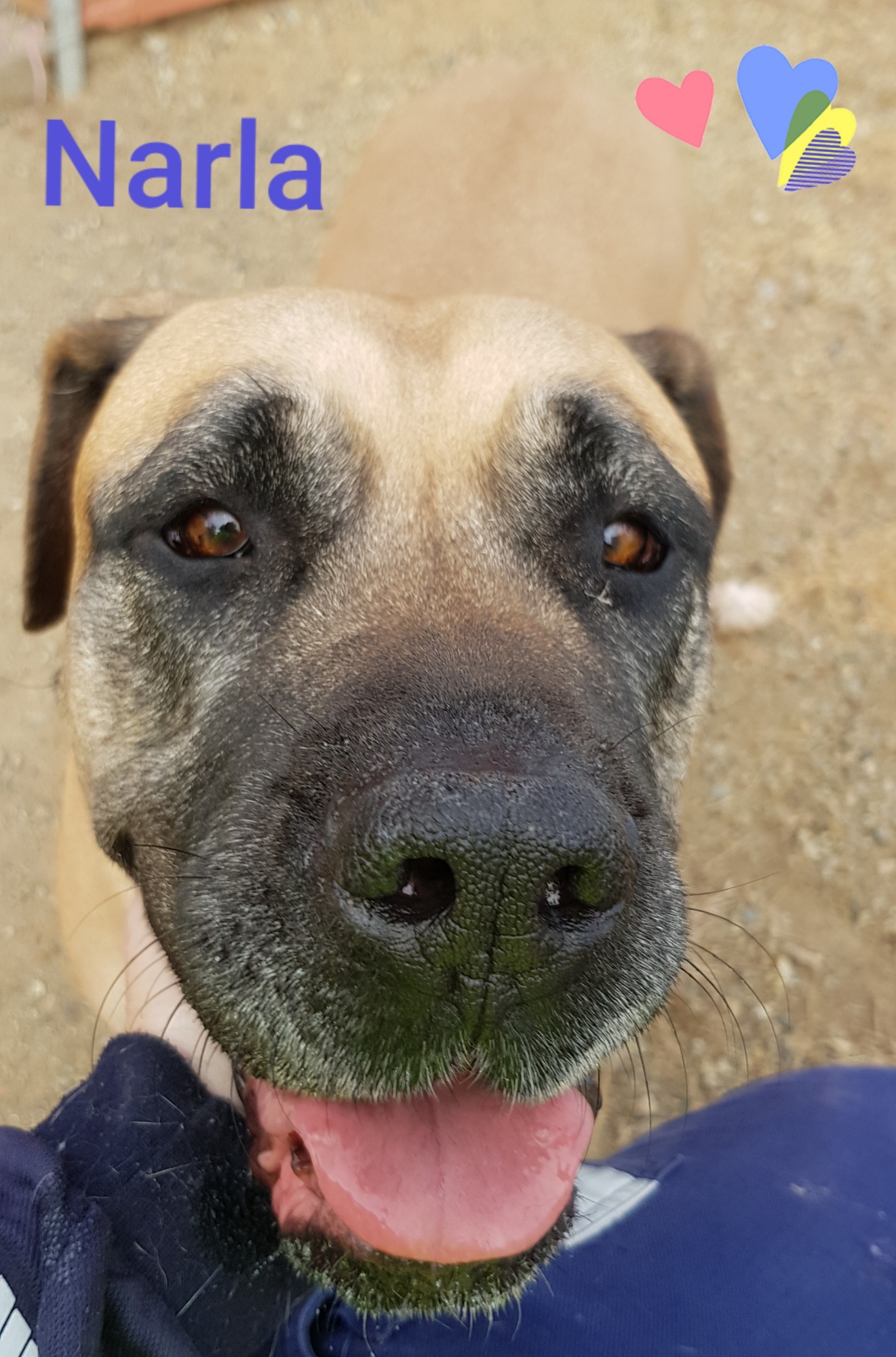 Narla is the size of a Bull Mastiff and does need to lose some weight. A doggie playmate or daily walks will help her lose weight.