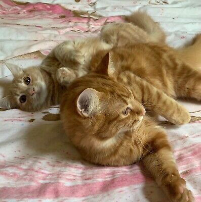 They are six months old but small in size for their age so very cute. Love to purr and have cuddles. Only ever had each other so looking for a home together.