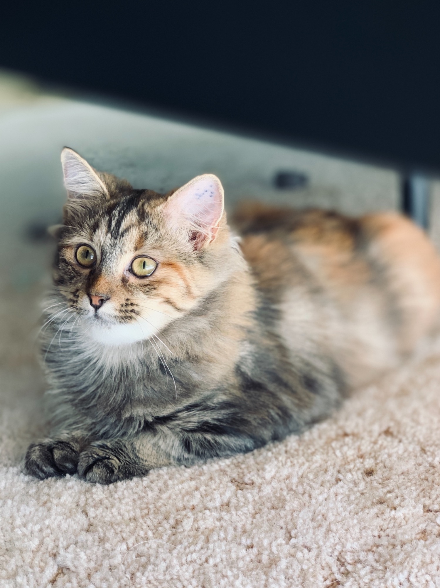 Once she was moved to a carer (along with Summer Rain), it became evident that these girls had previously had interactio very little interaction with humans and were scared of the world. After months in care, both are making great progress.