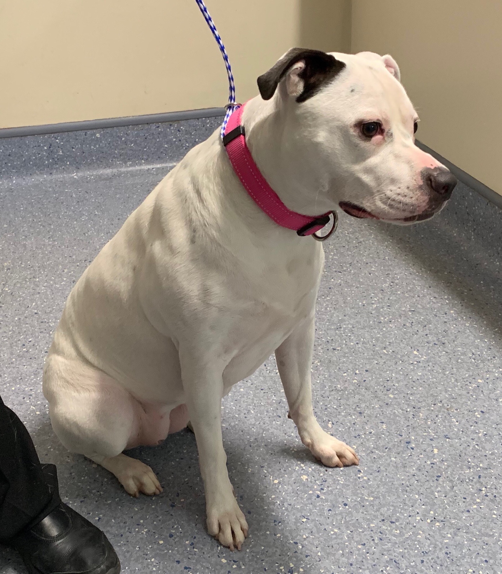 Cloey is a young active girl that is full of life. Loves everyone but will require some training. Can perform basic commands such as sit. She will need daily walking and plenty of activities to keep her busy.